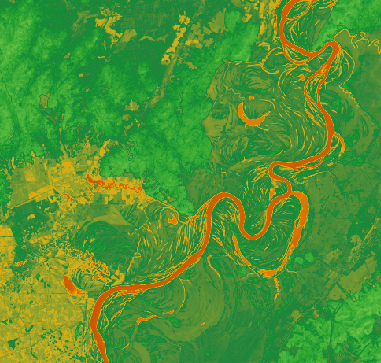 可通过多种卫星遥感数据计算 NDWI 指数,用户在使用功能前需了解遥感数据类型,区分遥感数据的波段含义,对于常见卫星遥感影像波段介绍请参看数据说明。