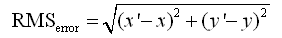 对于线性配准和多项式配准,在选择了一定的地面控制点后,都用以下的公式计算每个地面控制点的均方根误差(RMSerror):