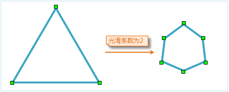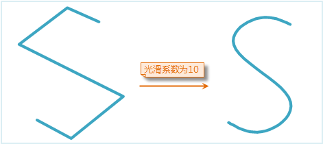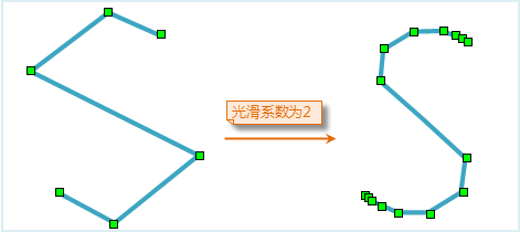 光滑系数是控制光滑度的参数, 在 B 样条法中也可以理解成线段上两个节点之间插入点后分隔的段数。
