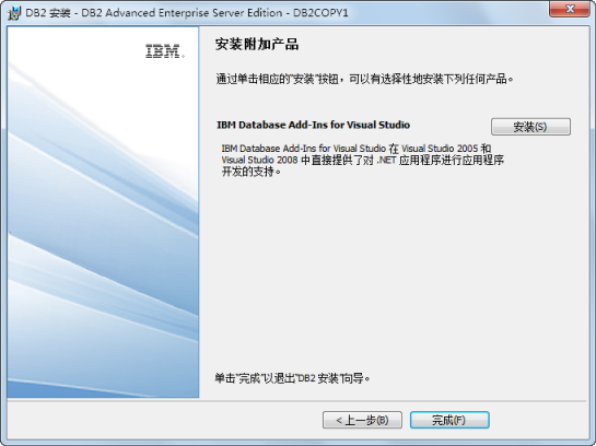 图:"安装已完成"对话框 - 弹出“安装附加产品”对话框。如果不想安装附加产品,单击“完成”按钮,结束安装;如果想安装附加产品,在附加产品单击“安装”按钮,进入附加产品的安装。