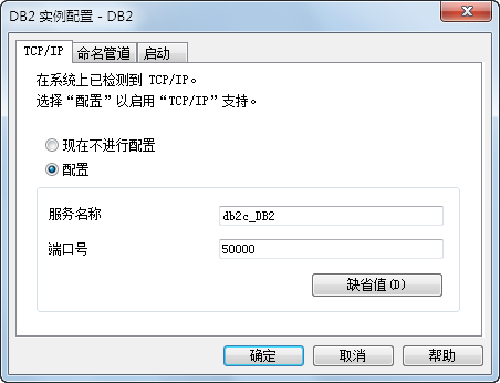 图:“配置DB2实例”对话框 在弹出的“DB2实例配置”对话框中,可对DB2实例的服务名称和端口号等信息进行配置,也可以选择不配置,在安装完成后再进行配置,如下图所示。