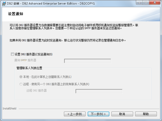 图:“准备DB2工具目录”对话框 - 继续安装,弹出“设置通知”对话框,为 DB2 服务器配置 SMTP 服务器,可将运行状况警报发送给 SMTP 服务器。若取消“设置 DB2 服务器以发送通知”前的勾选框,则 DB2 服务器的运行状况将记录在管理通知日志中,如下图所示。单击“下一步”按钮。