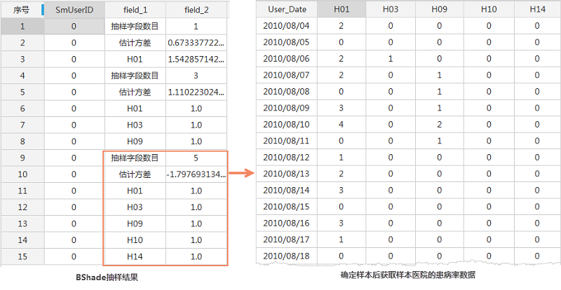 A region needs to get the daily incidence of a disease in a certain month of this year. Because there are many hospitals, the data collection of all hospitals is time-consuming. Now we need to sample the designated hospital as a sample, and then get the prediction results. Before the prediction, the morbidity data of last year of 19 designated hospital in the region have been collected as a reference. Using the Bshade Sampling function, 5 hospitals with the smallest estimated variance can be extracted as samples, and the incidence data of these 5 hospitals this year can be used for prediction and analysis.