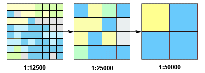 After you create an Image Pyramid for an image, each time you view the image, the system fetches its Image Pyramid to display the data. When you zoom in or out of an image, the system automatically selects the most appropriate pyramid level to display the image based on the user's Display Scale.