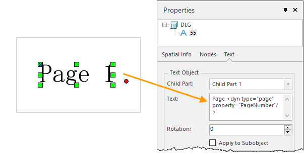 - Pages and total pages: Page fields can be added to the Map Series layout as Dynamic Text. The page number can be based on the field value of the index layer, and the static text is added at the same time, so that the static text and the Dynamic Text together form the display content of the page and the total number of pages. For example, if you add the text display content of "Page X of 10" and select the page number field PageNumber as the display field of Dynamic Text, the text displayed on the layout page will be the page number "1" of the current page, and click "1" to view the Text Property. The label displayed at Text Content is Dyn type = "page" property = "PageNumber"/, manually add static text as: < dyn type = "page" property = "PageNumber"/ Pages of 10. The text in the layout now reads "Page 1 of 10".