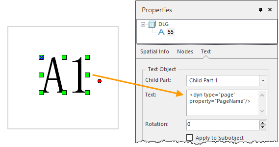 - Click the OK button and the text will be displayed as a property of the selected field on the current page. Dynamic Text