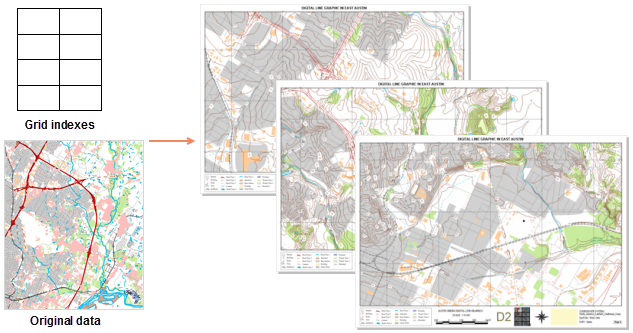 - Index Layer: Defines the Geographic Range of the map frame for each page in Map Series. The index face object in the index layer is used to control or define each page in the Map Series.