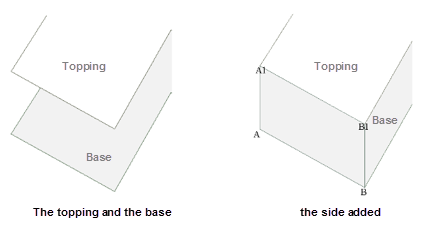 From the comparison of Source Data and stereo top data, it is not difficult to find that they have a common feature that the coordinate of each point only has a specific value in the Y direction, and the X coordinate remains unchanged. According to this feature, it is convenient to construct the side data upward and take the first and second points of Source Data. We name it as point A and point B. With point A as the starting point, the second point is the point A1stretched by the Y value of point A, the third point is the point B1stretched by point B, and the fourth point is point B. Construct the point set in the clockwise direction to generate the side face. The principle is shown in the following figure:
