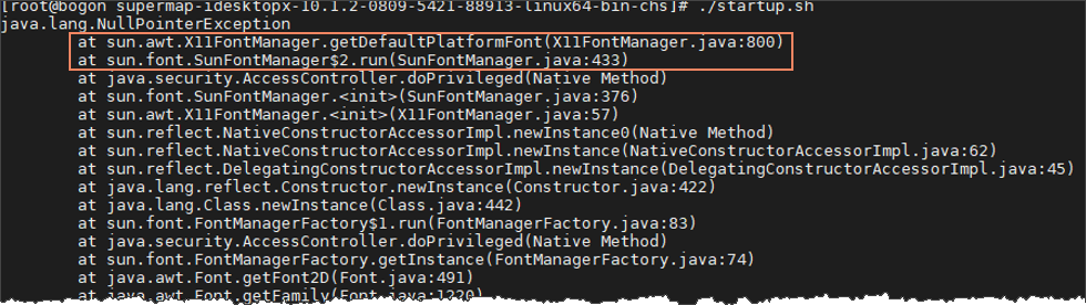 | 问7: | 在Linux系统中启动 SuperMap iDesktopX 失败,并提示下图所示的信息,怎么办?