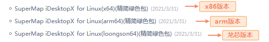 为适应不同Linux系统的计算机CPU架构,桌面Linux版本提供了x86、Arm、龙芯三类产品包,每种类型都有tar、deb、rpm三种格式。产品包的选择方式如下: