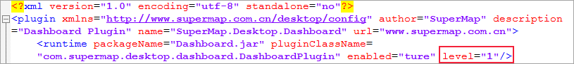 2. 当 SuperMap.Desktop.Dashboard.config 配置文件中 level 属性设置为 1时,SuperMap.Desktop.Dashboard 插件加载失败!