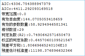 执行成功后,输出窗口会输出本次分析的结果信息,如下图所示。若分析结果的残差在用户的接受范围内,即可根据该结果及解释变量,预测事件的结果。