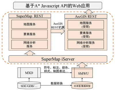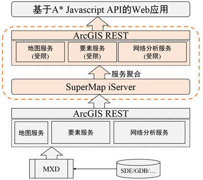 基于 ArcGIS 的数据源或地图文档,通过 SuperMap iServer 对接 ArcGIS 的服务,目前支持转发 ArcGIS REST 三种服务类型,包括要素服务、地图服务、以及网络分析服务,转发为SuperMap 支持的服务类型。