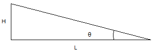 坡度可以用度数或百分数表示,其中,度数坡度是垂直增量与水平增量之比的反正切值(arctan),百分数坡度是垂直增量与水平增量之比乘以100。在 SuperMap 中,坡度计算提供了度数、弧度和百分比三种表现形式。设坡度的垂直增量为H、水平增量为L,则角度: θ = arctan(H / L),弧度:R = θ * π / 180,百分比:P = (H / L) * 100,如下图所示。