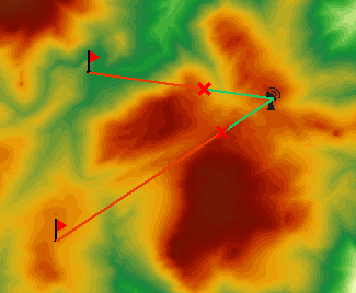 在多点可视性分析中我们可以对一个或多个点单独附加高程值,附加了高程后,很有可能赋予附加高程与不考虑附加高程得到的结果截然相反,因此了解地物高度和添加附加高程在有的情况下非常重要。