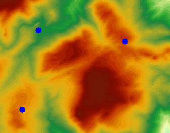 多点可视性分析可以在栅格地图上直接鼠标点选多个点构成的参与分析的点;也可以通过导入点数据集的方式来生成参与分析的点。
