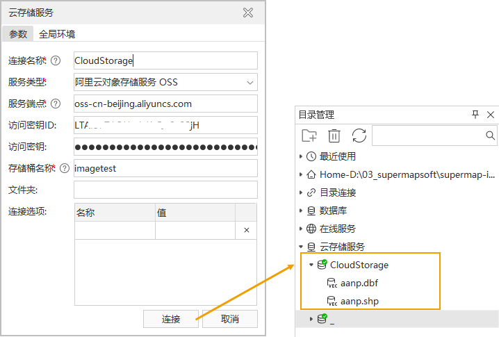 添加阿里云对象存储服务连接