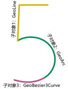 由多个子对象组成,每个子对象仅包含一个几何对象,几何对象可以为:折线(GeoLine)、圆弧(GeoArc)、圆(GeoCircle)、椭圆弧(GeoEllipticArc)、椭圆(GeoEllipse)、参数化线(GeoCompoundCurve)、贝塞尔曲线(GeoBezier3Curve),特别的,子对象为GeoLine时,所包含的线对象个数只能是1。