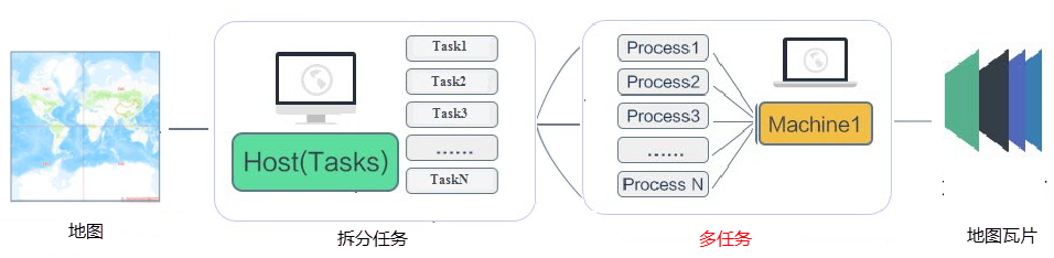 随着技术的进步,地图数据量已经迈进海量数据的时代,而单任务切图的效率已经不能满足需求。例如,在普通的工作机上,对中国范围、几十个图层的地图生成数十级比例尺的瓦片,可能耗费十几天。