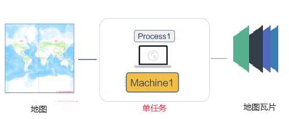 单任务切图,也称为单任务生成地图瓦片,是指在一台计算机中启动单个进程执行切图任务,进程一次调取一个切图任务,结束当前任务之后再依次调取后续任务执行切图。