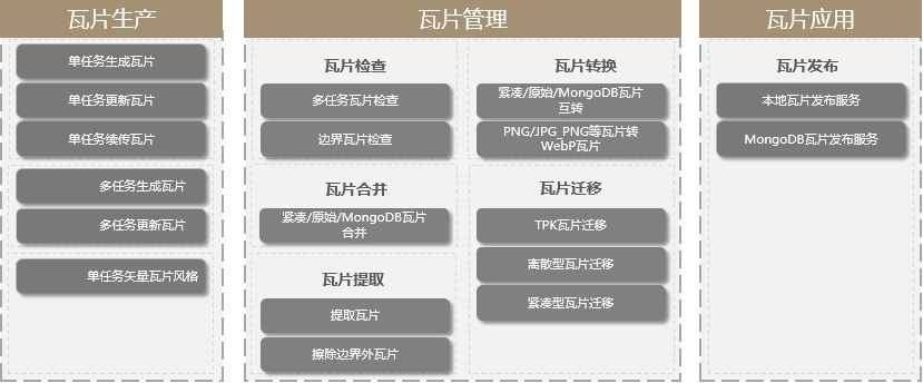 - 瓦片管理:将为您介绍如何对瓦片进行合并、转换、检查等。