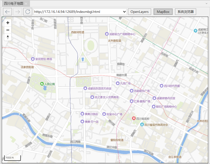 支持将切好的矢量瓦片在桌面中打开,可以选择 MapBox 或者 OpenLayers 来渲染显示矢量瓦片。