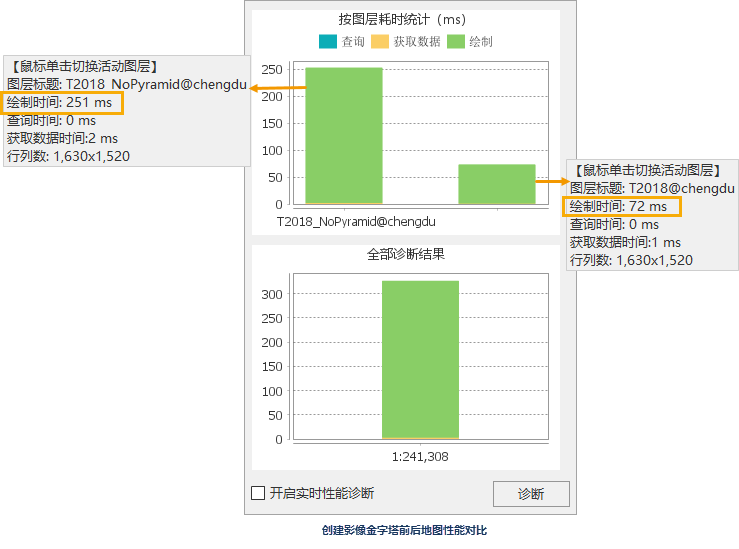 绘制时间是指在地图中显示、渲染对象的时间。优化绘制时间,就是提升地图要素的显示效率,可从优化数据集、优化地图显示两个方面入手,具体说明如下: