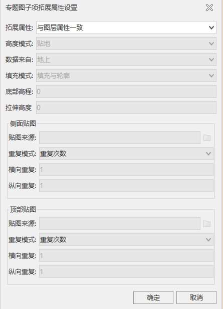 目前支持对三维单值专题图和三维分段专题图进行扩展属性的设置。
