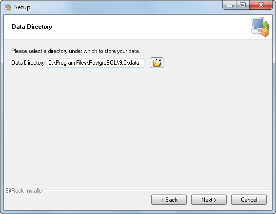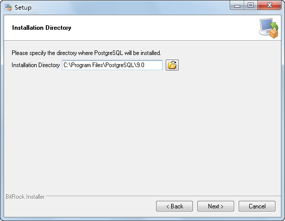 如下图所示,指定 PostgreSQL 的安装目录。然后,单击“Next”按钮继续安装。