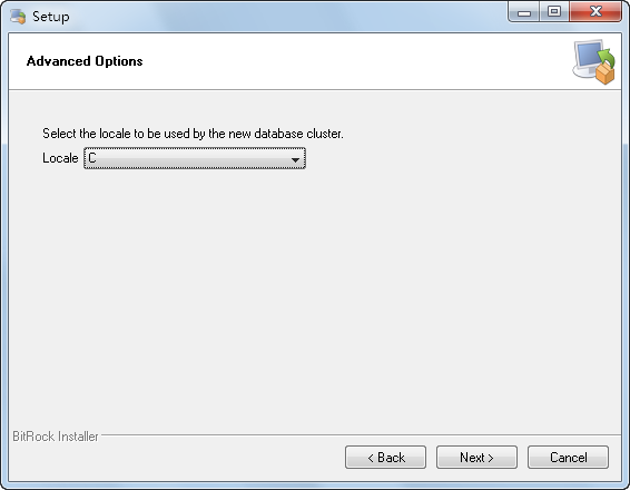 如下图所示,选择数据库存储区域的运行时语言环境。然后,单击“Next”按钮,进入安装进度页面,等待 PostgreSQL 安装完毕。