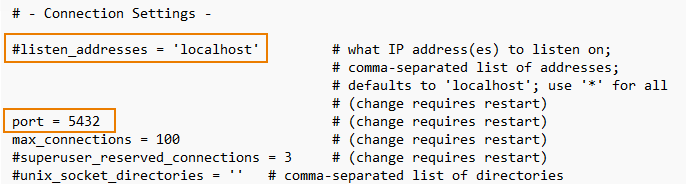 - 配置监听地址:默认为localhost,可在data目录下的postgresql.conf文件中进行listen_addresses参数修改。