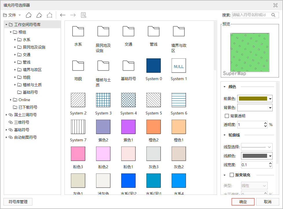 符号库窗口符号风格设置区域中的预览区来预览用户所设置的符号风格。