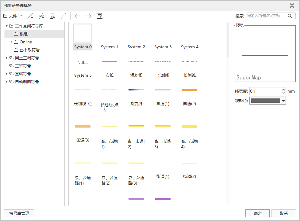 符号库窗口符号风格设置区域中的预览区来预览用户所设置的符号风格。