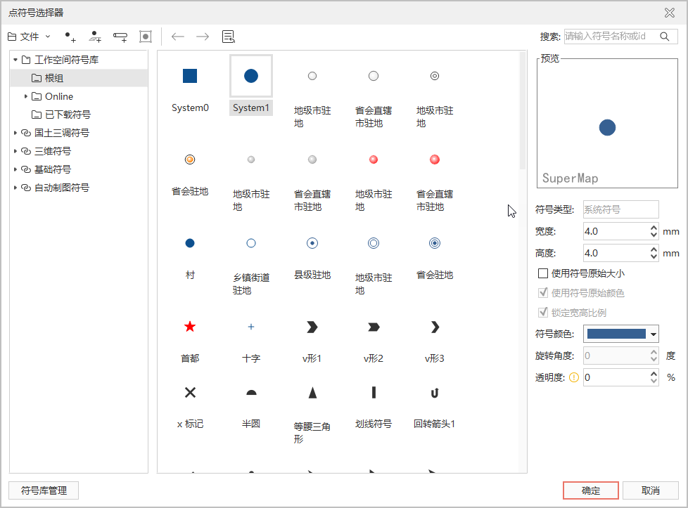 符号库窗口符号风格设置区域中的预览区来预览用户所设置的符号风格。