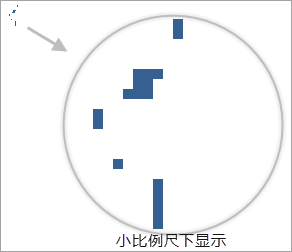 通过如下的示意图,可以帮助您理解过滤小对象功能,图1为大比例尺下和小比例尺下未过滤重叠小对象的显示,图2为设置容限为8像素,对象最小尺寸为8像素过滤重叠小对象。
