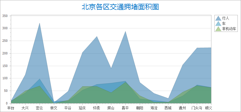 面积图强调数量随时间变化的速度,也可用于引起人们对总值趋势的注意。
