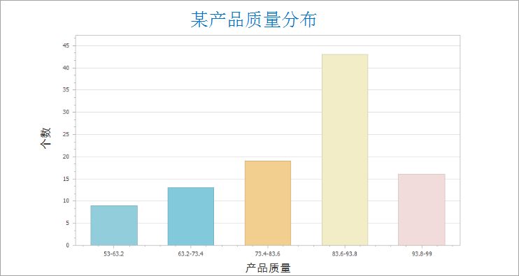 它是一种很直观的图表类型,能够显示各组频数分布的情况,易于显示各组之间频数的差别。例如:表示某工厂产品质量的分布情况,判断和预测产品质量及不合格率。