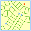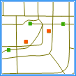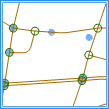 检查一个线数据集中是否存在两个(或两个以上)线对象在线的节点处或线的内部相交,即线对象只能在端点处与其他线相交,且所有交点必须是线的端点,所有相交的弧段必须被打断。该规则不检查线对象自相交的情况。 交点将作为拓扑错误生成到结果数据集中。 错误数据集类型:点数据集。 |