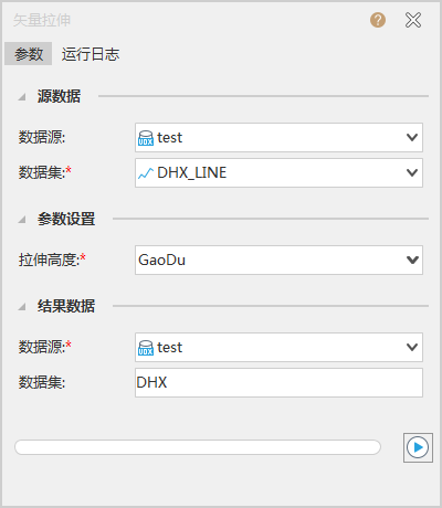 - 数据源:单击右侧下拉框按钮,选中二三维点、线数据集所在的数据源。打开矢量拉伸功能后,如果当前打开的场景中有多个二三维点、线数据集图层。
