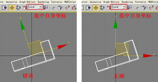 - 如果使用自身定义的坐标,选中模型,坐标轴必须是正的,如图所示: