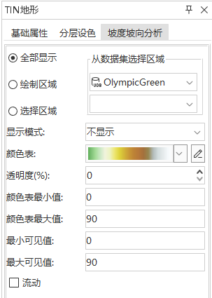 - 全部显示:默认为“全部显示”,即该图层模型全部参与坡度坡向分析。