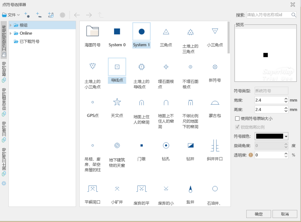 - 在设置面符号的透明度时,需要注意一点:面填充符号的透明度属性取决于面对象填充前景色字段中设置的透明度,而不是面对象的边界线的线型颜色中设置的透明度。