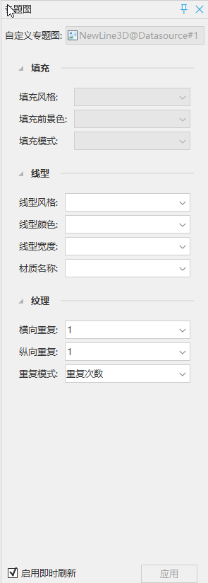 - 材质名称:选择记录外挂材质路径的属性字段(文本型)。如果外挂材质为PBR材质,则线型颜色不起作用。