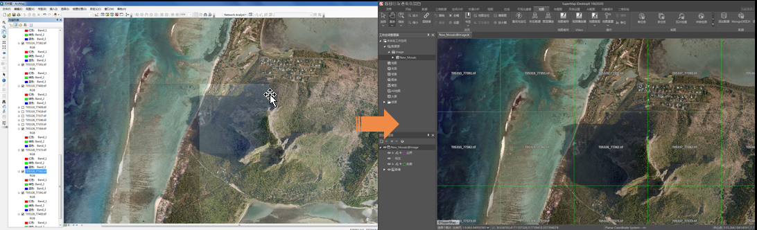 In the aspect of Data Management, data is generally stored and managed based on a certain data model, and the data model usually contains many specific sub-data models, such as point/line/region, network, Mosaic Dataset, etc. Therefore, the first step of Data Migration is to replace other data models with the data models provided by SuperMap. In addition, these data are stored in the form of individuals, files or databases, so these other platform storage media need to be converted into the corresponding databases provided by SuperMap for storage.