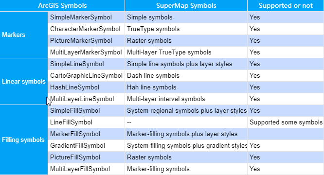 SuperMap iDesktopX supports the migration of Symbol Information from the ArcGIS platform. Support the Multiple Convert of the symbol library file (*.style format) provided by ArcGIS to the symbol library file corresponding to SuperMap. Namely, Marker Symbol Library *.sym files, line symbol library *.lsl files, and Fill Symbol Library *.bru files. It provides an efficient and fast symbol style migration method, which is convenient for users to perform fast style configuration.