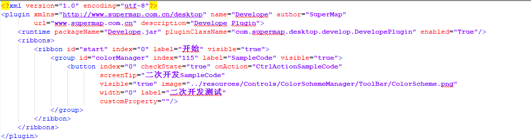 - " Xmlns: namespace for plugin Config File, value must be:" http://www.supermap.com/desktop ".".