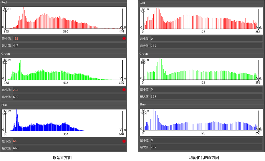Histogram equalization is a way to enhance image contrast. Its main idea is to change the histogram distribution of an image into an approximately uniform distribution, which is a nonlinear stretching. The returned result type is RasterRDD. The description of image stretching can be referencedImage maximum stretching。