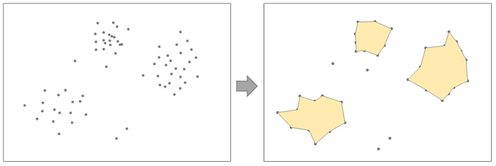 Point regionalization refers to obtaining a dataset of areal features based on the area covered by a clustered point group (no less than 3 points), which is a commonly used function in cartographic generalization.