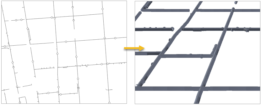 Generate two-dimensional or three-dimensional line data based on the pipeline attribute table information, creating line attribute tables and point attribute tables.