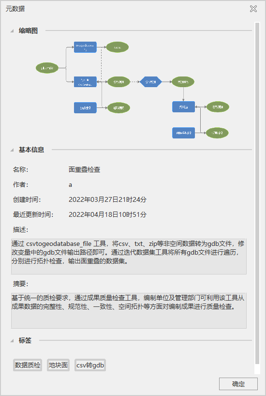 After the model is built, you can select Edit Metadata in the right-click menu of the modeling page to edit the title, author, model description and label of the model in the pop-up panel, and also generate model thumbnail automatically.